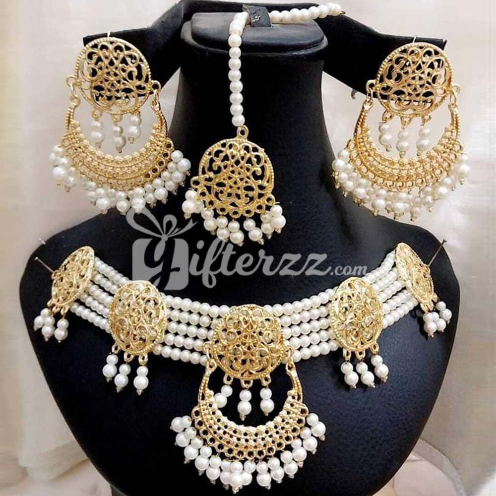 ₨1,750This Pearl Infinity Necklace Set is one-of-a-kind and makes a great accessory for a party or wedding function. These earrings are also ideal for gifting to special ones on special occasions. Now available Online Jewellery in Pakistan, like gold bracelets, artificial rings, gold pendant sets, gold ear tops, ladies’ jewelry,…