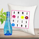 It’s a square cushion with a sweet message saying, “Ammi I Miss You”. Doesn’t it sound lovable? The cushion is stuffed with soft cotton and fiber it’s very fluffy to hold. Along with cool water perfume with an elegant fragrance.