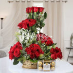 Express the message of purity, love, and innocence by this Chocolate with Flowers Basket. Make him/her feel special by gifting a lovely gift to convey your feelings to the one you love. Here is a gift which perfect for gifting the ones you adore on any gifting occasion such as Birthdays, anniversaries, Eid, Valentine’s Day, or Friendship Day and making your dear ones feel special.