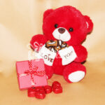 This excellent Delightful Love combination includes 6 pieces of imported heart-shaped chocolates in a red box with a red teddy bear. This is just the right combination to present to your loved one on her special day.