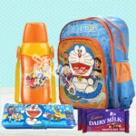 A Wonderful and thoughtful gift for your kids by Gifterzz.com. A nice Doremon School Bag Gift Hamper with a Doremon character printed school bag teamed with a Milton Water Bottle and Magnetic Pencil Box can be an ideal gift for your little one.