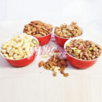 Dry Fruits in Ceramic Bowl have become a popular gift item to send to loved ones on special occasions. Send this Attractive 4 pcs of ceramic Bowl Set with 4 healthy dry fruits each bowl contains 150 gm of almonds, cashew, Pistachios, and walnuts packed nicely.