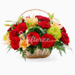 Send hearty wishes to your beloved ones with a basket of vibrant-colored Mix Flowers Basket Gifterzz.com presents this beautiful arrangement basket containing a gorgeous mix of flowers like 12 Red Roses, Lilies with lots of green fillers.