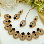 A subtle display of sophistication, this Oceanstone Gems Choker Set is crafted in Brass with a Gold finish. A modern accessory set in pavé setting that will become your ultimate style statement. Pair them with your favorite Saree or gown for a chic fashionista look.