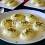 Rasmalai made from paneer, milk, malai, and sugar, garnished with chopped dry fruits, it is mostly served and eaten on momentous occasions such as Graduation, Anniversary, Wedding, Engagement, Roza Khushai, Khatm-e-Quran, Hajj, Promotion, Mother’s Day, or Eid or just any celebration!