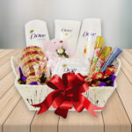 Send this beautiful Soft & Delighted Basket for Her that features so many mixed gifts.