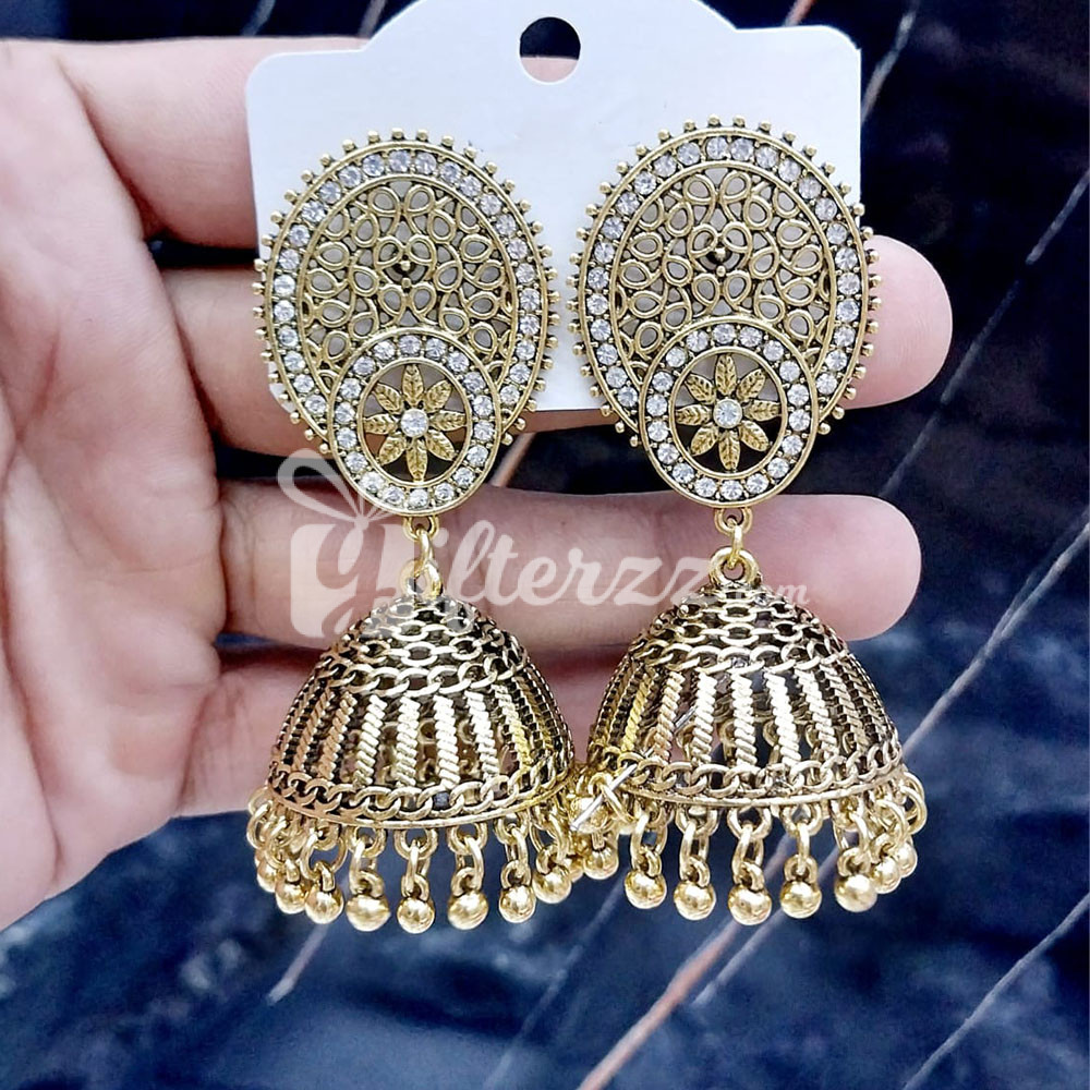 ₨1,650Inspired by the soft glow of moonlight, Chandni Jhumki radiates elegance with its delicate design. A graceful pick that adds a touch of timeless charm to every occasion. Now available Online Jewellery in Pakistan, like gold bracelets, artificial rings, gold pendant sets, gold ear tops, ladies’ jewelry, fancy jewelry, choker…