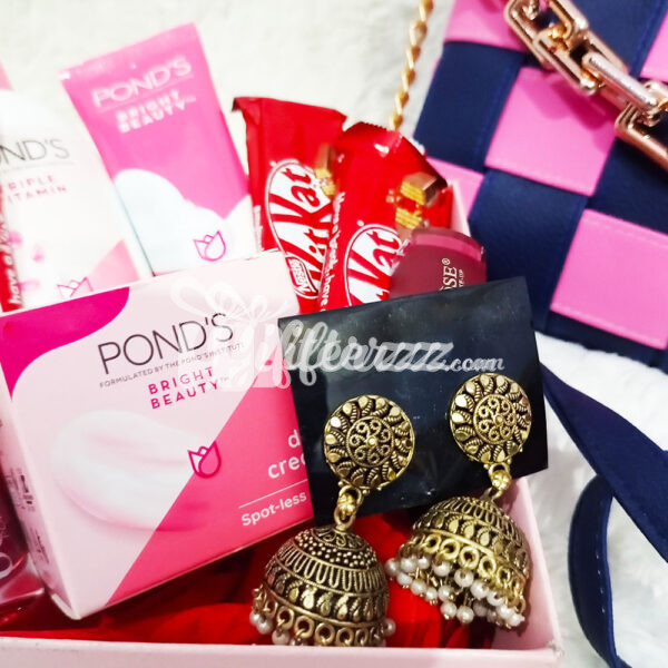 ₨9,300Great things come in small packages! A perfect Queen of my heart for any occasion! It can be given as a token of appreciation to a family member, colleague, or friend! Or as a gesture of love to someone special! 2 Choori Set 1 Jhumki Set 3 Kitkat 2 fingers…